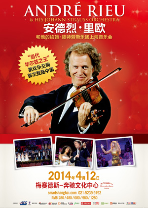 Violin master, conductor and one of the best-selling live acts in the world, André Rieu makes his first ever China appearance on April 12 at the Mercedes-Benz Arena. Dubbed "The King of Waltz," Rieu has made Billboard magazine's top ten concert tour list two years in a row, following just behind the likes of U2, Madonna and Lady Gaga. He'll be conducting the 60-piece Johann Strauss Orchestra as they play waltzes, operettas, film scores and more. Rieu will also break out his 1732 Stradivarius violin for a few tunes. Tickets range in price from 280 to 1280rmb.André Rieu