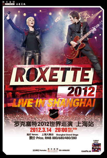 She's got the look! Marie Fredriksson and Per Gessle of Roxette came out of Sweden in the late '80s and conquered the world with their finely crafted pop hits -- 33 chart-busting singles including "It Must Have Been Love", "Joyride", "Listen to Your Heart:", "How Do You Do", "Dressed For Success", and "The Look", with a total record sale tally of over 75 million -- more than even ABBA.Roxette Back in China