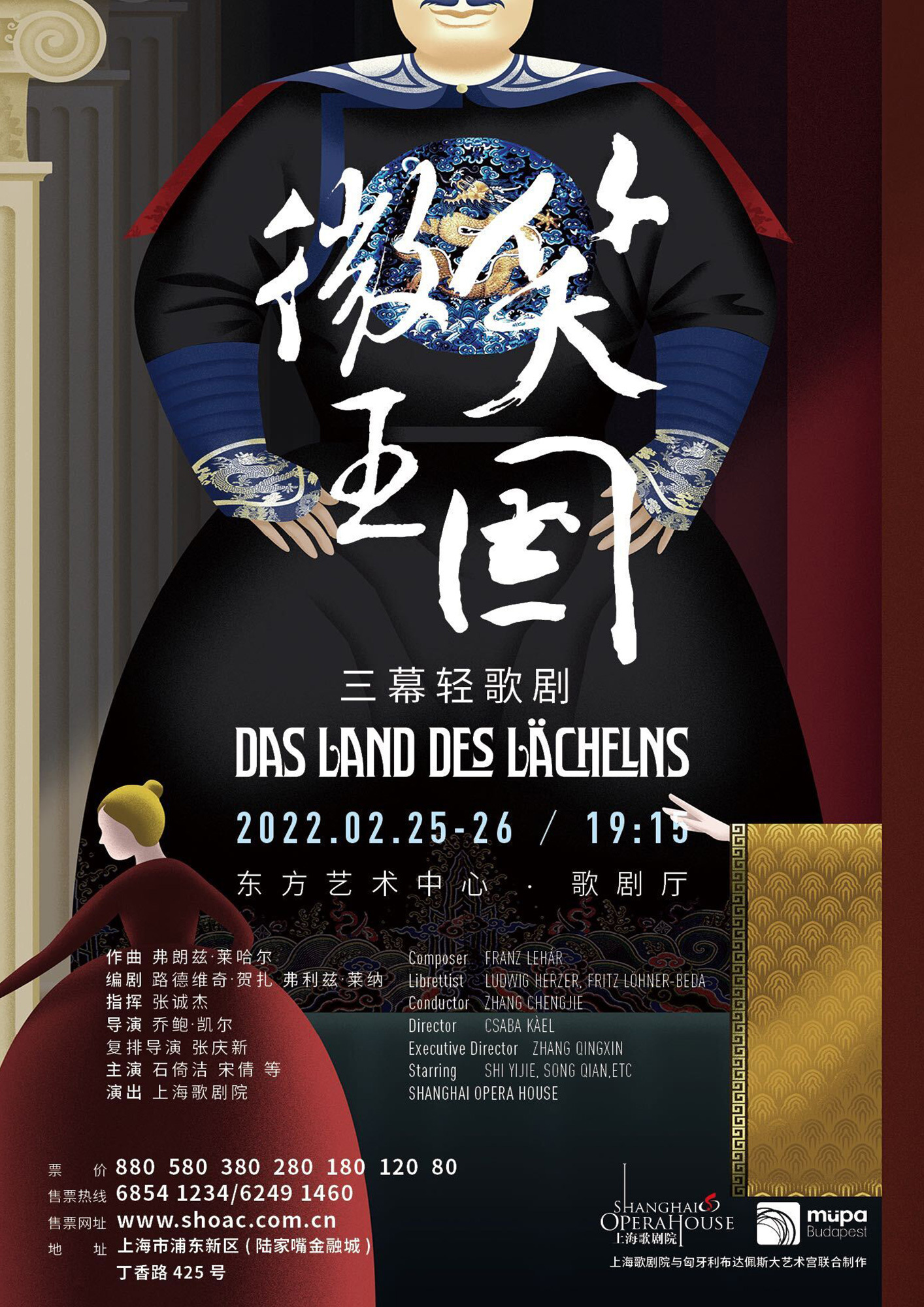 "The Kingdom of Smiles" in is a romantic three-act operetta by German composer Franz Lehár taking place in Vienna and Beijing at the turn of the 20th century. It tells the love story of the Chinese prince and the daughter of the Count of Vienna. Although this transnational love did not make the lovers become dependents, it left the world with "You Are the Love in My Heart" and "Always" Smile" and other intoxicating beautiful arias. The operetta is co-produced by the Shanghai Opera House and the Grand Palace of Arts in Budapest, Hungary, and originally premiered in Shanghai in November 2018. Following the premiere in Shanghai, the production of this edition was staged at the Grand Palace of Fine Arts in Budapest in February local time, and won the enthusiasm of the Hungarian audience on the occasion of the 70th anniversary of the establishment of diplomatic relations between China and Hungary. This year the Shanghai Opera House will once again invite tenor Shi Yijie to lead the lead role. Under the baton of young conductor Zhang Chengjie, together with soprano singer Song Qian and other Shanghai Opera artists, they will interpret this gripping love story.Shanghai Opera - Das Land des Lächelns